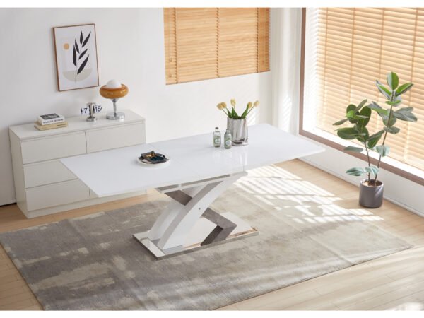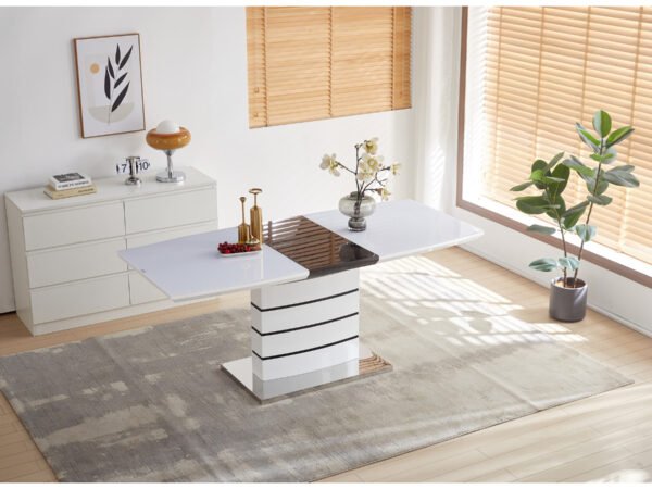Prețul inițial a fost: 4.190,00 lei.3.758,00 leiPrețul curent este: 3.758,00 lei.Masa extensibila Delta, 140-180x80x76 cm, alb/negru
