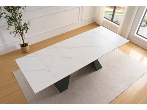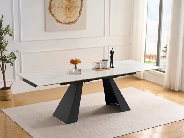 Prețul inițial a fost: 3.350,00 lei.2.858,00 leiPrețul curent este: 2.858,00 lei.Masa extensibila DECIN, blat ceramic, 180-260x90x76 cm, negru/alb crimeea