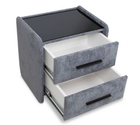985,00 leiNoptiera EMMA, personalizabilă, blat din sticlă neagră, tapițerie premium, sertare