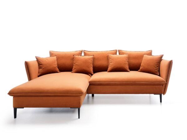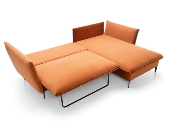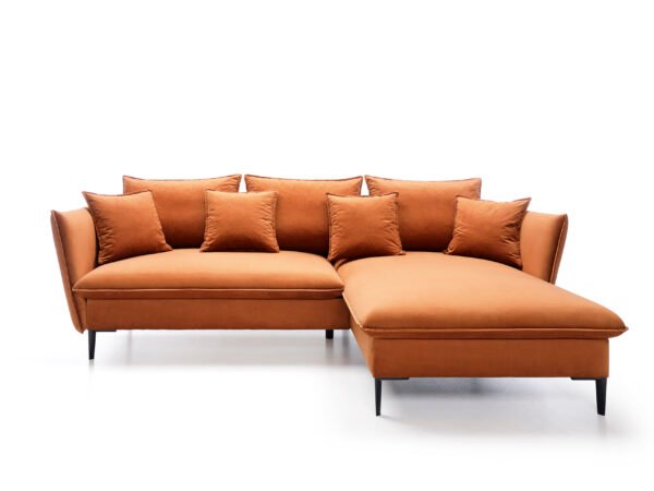 Colțar extensibil GLOSS, spațiu de depozitare, 258×167 cm, culoare portocaliu, stofă catifelată, stanga