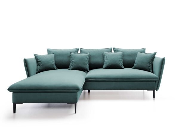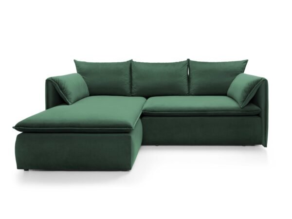 Prețul inițial a fost: 6.850,00 lei.5.800,00 leiPrețul curent este: 5.800,00 lei.Colțar extensibil GLOSS, spațiu de depozitare, 258×167 cm, culoare verde, stofă catifelată, stanga