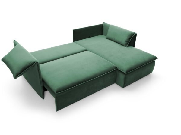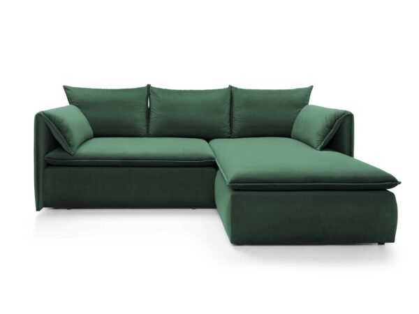 Prețul inițial a fost: 6.850,00 lei.5.800,00 leiPrețul curent este: 5.800,00 lei.Colțar extensibil GLOSS, spațiu de depozitare, 258×167 cm, culoare verde, stofă catifelată, dreapta