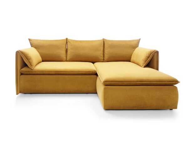 Prețul inițial a fost: 6.850,00 lei.5.800,00 leiPrețul curent este: 5.800,00 lei.Colțar extensibil GOLD, spațiu de depozitare, 230×166 cm, culoare galben, stofă catifelată, dreapta
