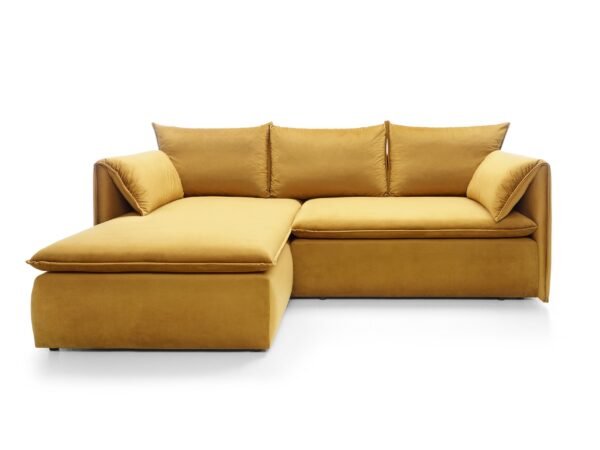 Prețul inițial a fost: 6.100,00 lei.5.350,00 leiPrețul curent este: 5.350,00 lei.Colțar extensibil GOLD, spațiu de depozitare, 230×166 cm, culoare galben, stofă catifelată, stanga