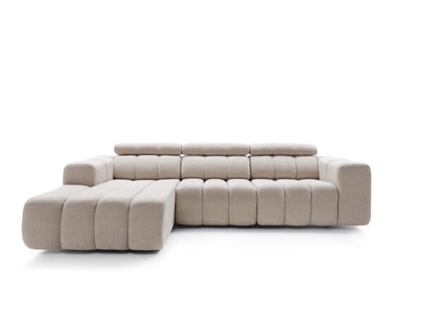 Prețul inițial a fost: 10.800,00 lei.7.850,00 leiPrețul curent este: 7.850,00 lei.Colțar modular ZURIA cu tetiere reglabile, cusături verticale, 288×188 cm, stanga