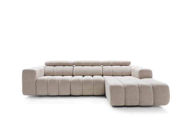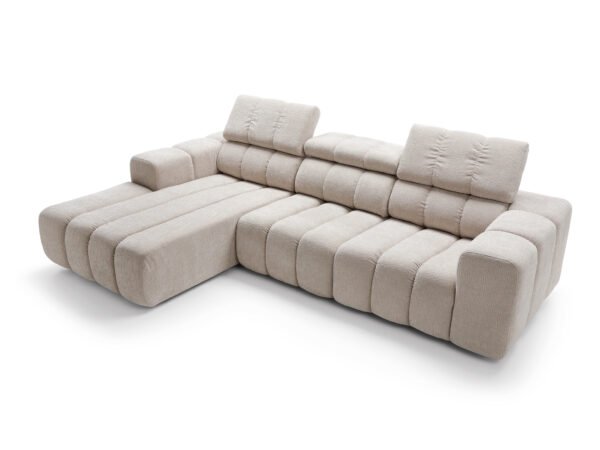 Interval de prețuri: 11.860,00 lei până la 13.050,00 leiColțar modular ZURIA cu tetiere reglabile, cusături verticale, 288×188 cm, dreapta