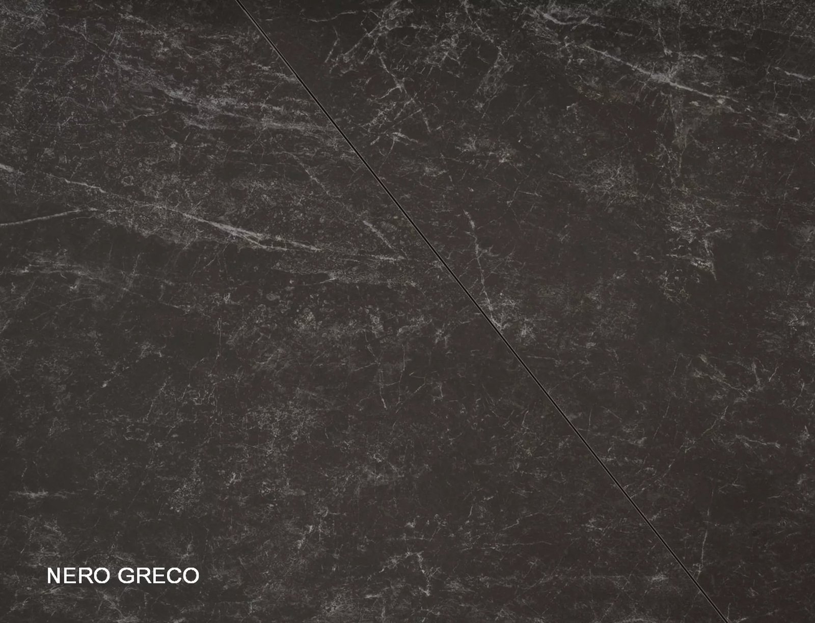 Masă extensibilă, blat: ceramică italiană NERO GRECO & sticlă securizată, cadru: MDF + furnir, metal; culoare: blat negru mat cu efect de marmură / cadru nuc.