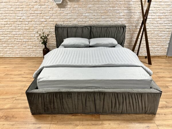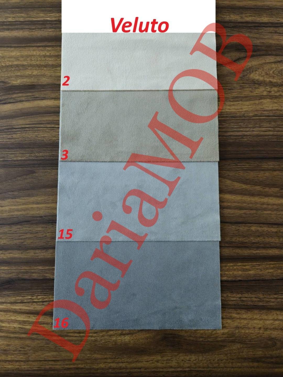 Patul este îmbrăcat într-o catifea premium de înaltă calitate, care conferă o textură luxoasă și o senzație moale la atingere, disponibilă în culorile: crem, bej-închis, gri-deschis, gri-închis.