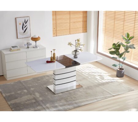 Prețul inițial a fost: 4.190,00 lei.3.758,00 leiPrețul curent este: 3.758,00 lei.Masa extensibila Delta, 140-180x80x76 cm, alb/negru