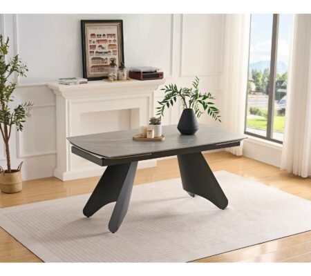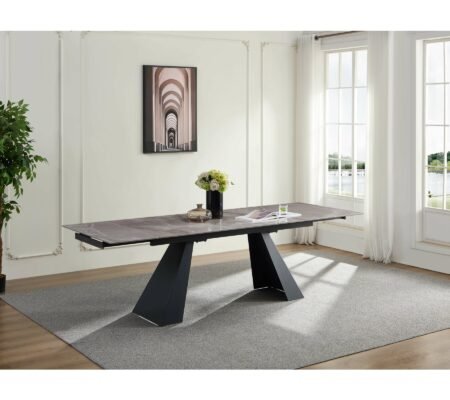 Prețul inițial a fost: 3.790,00 lei.3.149,00 leiPrețul curent este: 3.149,00 lei.Masa extensibila SHANE, blat piatra sinterizata, 160-240x90x75 cm, gri deschis/gri inchis