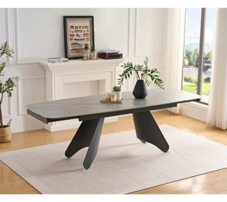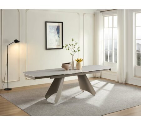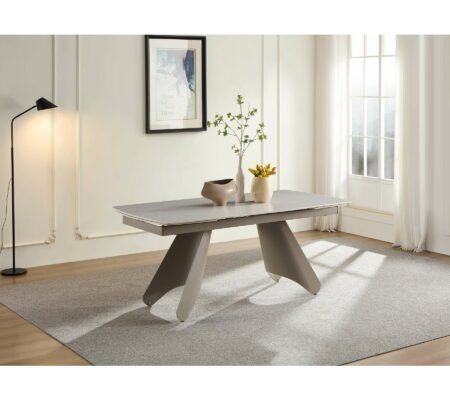 Prețul inițial a fost: 4.190,00 lei.3.458,00 leiPrețul curent este: 3.458,00 lei.Masa extensibila SHANE, blat piatra sinterizata, 180-260x90x75 cm, gri deschis/taupe